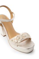 Delicate blooms meet shimmering silver. This elegant heel features graceful 3D floral accents that add texture and charm to its sleek metallic base. Perfect for festive nights and special occasions. Pair it with soft, flowing outfits for a refined, feminine touch.