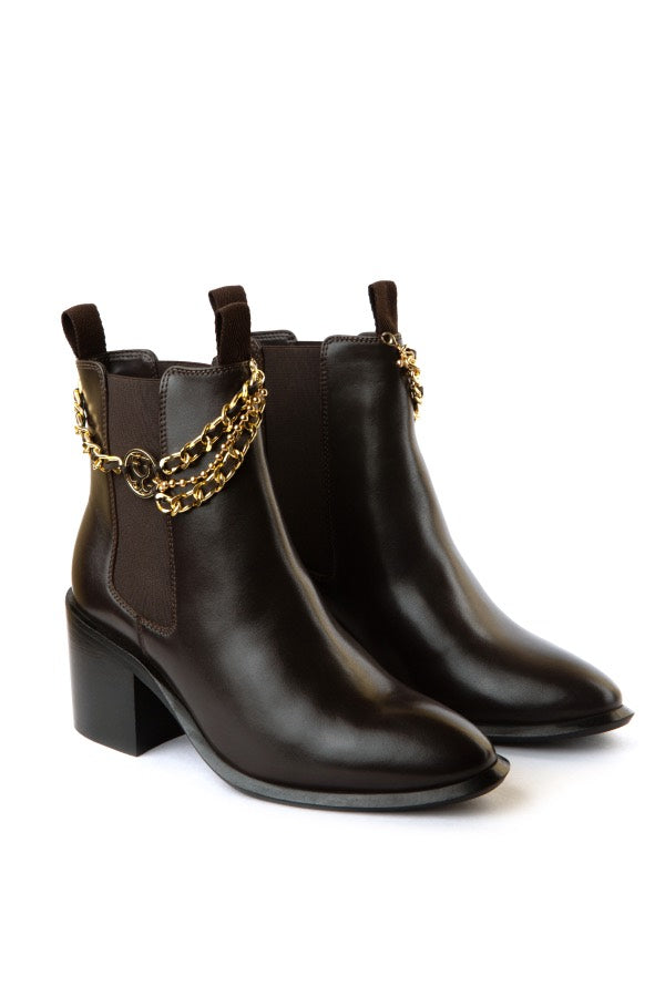Add a touch of old-school glamour to your style with boots that are smart and comfy. Featuring a detachable gold-toned chain with the logo detailing, these leather boots can give your everyday look a chic effect while keeping your feet warm.