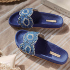 If you love anything blue, breezy, and beaches, then you€™ve got to slip into a pair as unique and fresh as Malibu sliders. With raffia detailing on a schiffli base, these sliders can perk up your casual look.