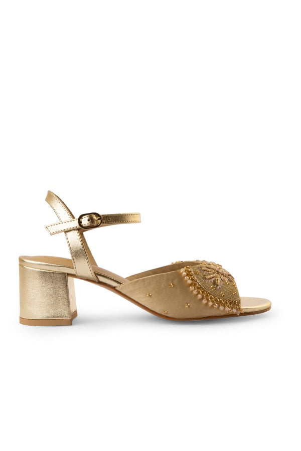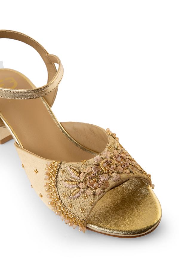 With a blend of timeless elegance and intricate craftsmanship, this heel is adorned with exquisite embellishments, making them perfect for festive events, weddings, and other formal gatherings. Its neutral gold palette and zari dabka work enhances the sophisticated touch. You can pair it with traditional lehenga, saree, or even a contemporary fusion outfit.