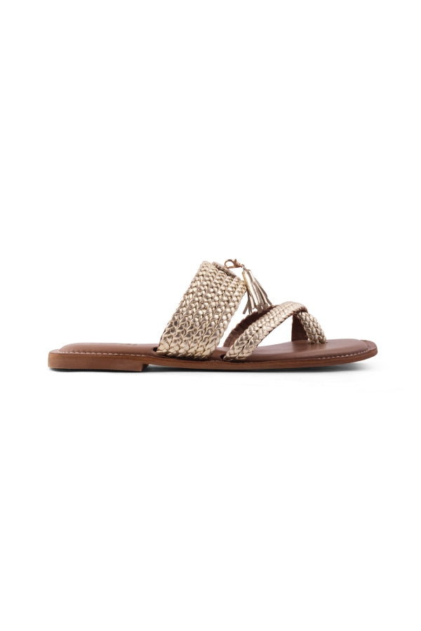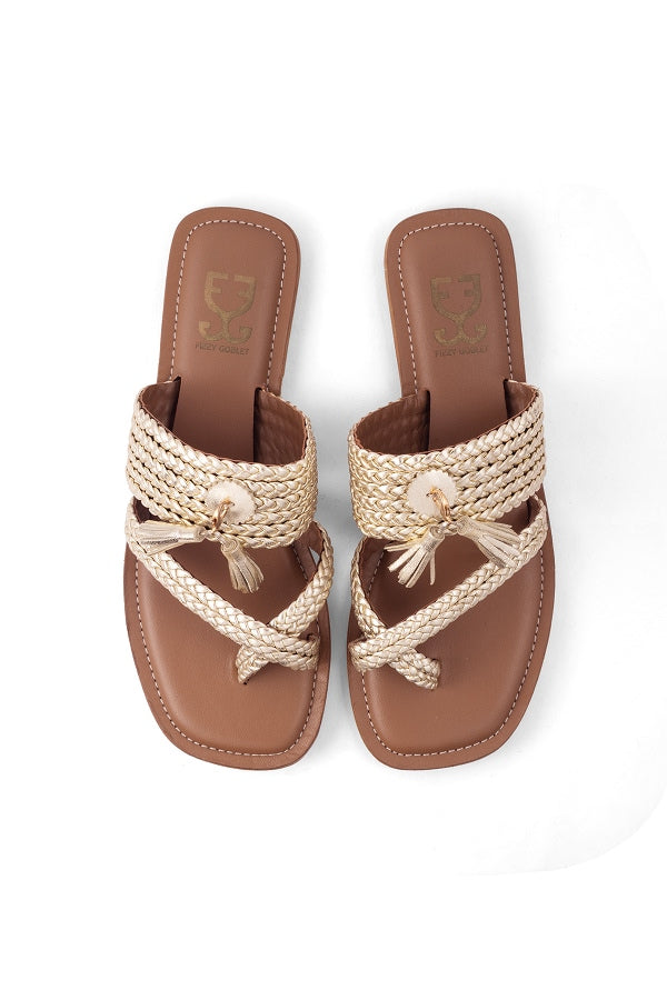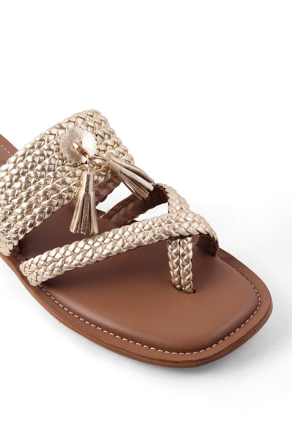 Celebrate craftsmanship with these woven leather kolhas designed for both style and flexibility. The detachable tassels in three color options let you mix, match, or go minimal whenever you like. A versatile footwear essential that brings a fresh twist to a classic silhouette.